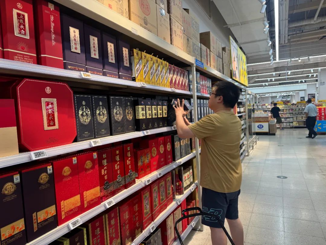 △圖為北京一家超市的酒類售賣專區(qū)。